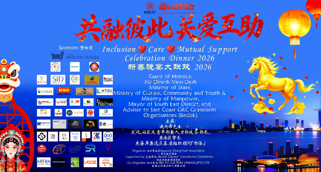2026年3月20日,在勿洛社区(Bedok)支持下,新加坡中原会于新加坡EXPO福满楼举办“新春晚宴大联欢2026”,汇聚超过500位各界嘉宾,其中包括约400位社区长者。